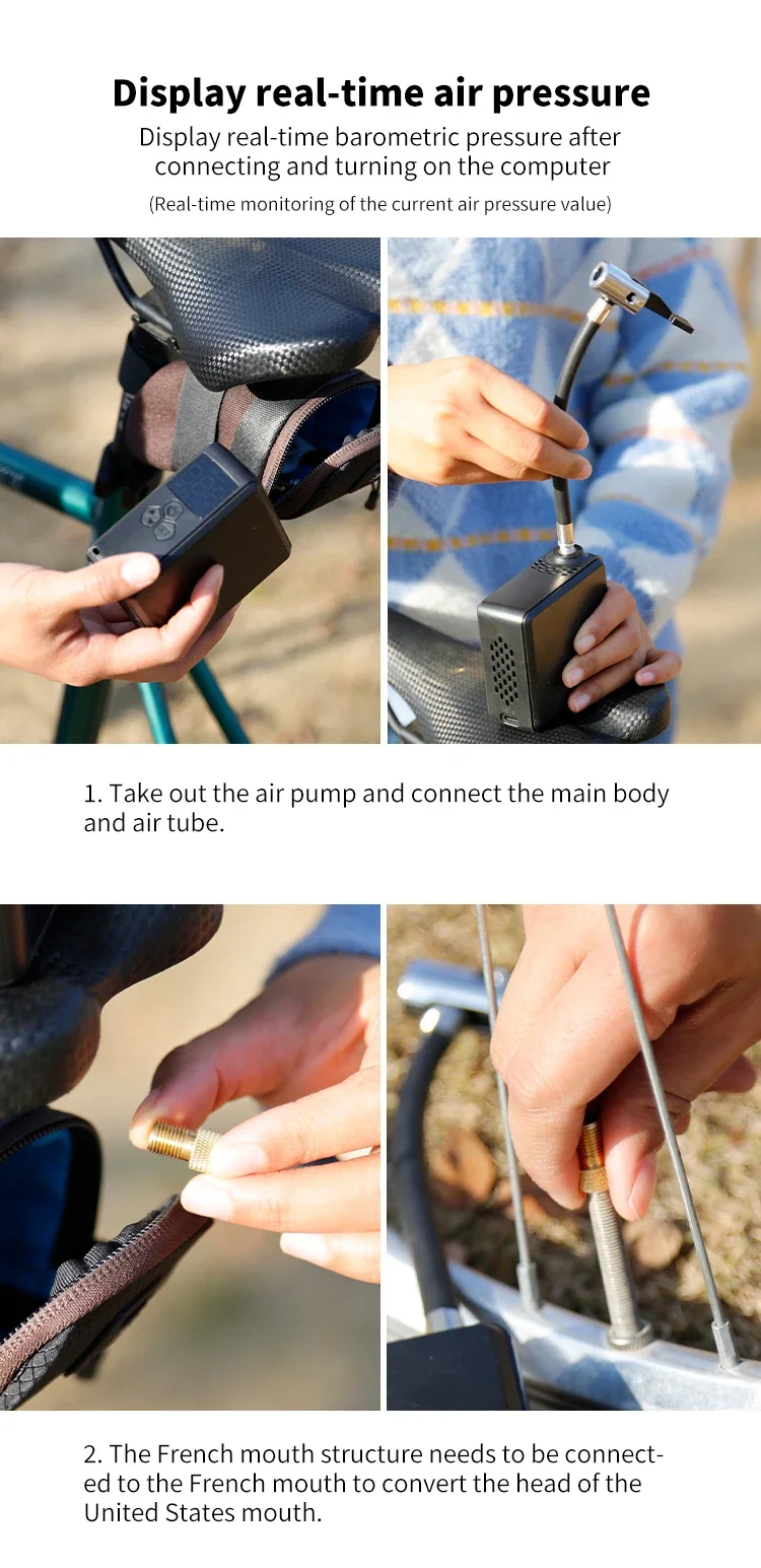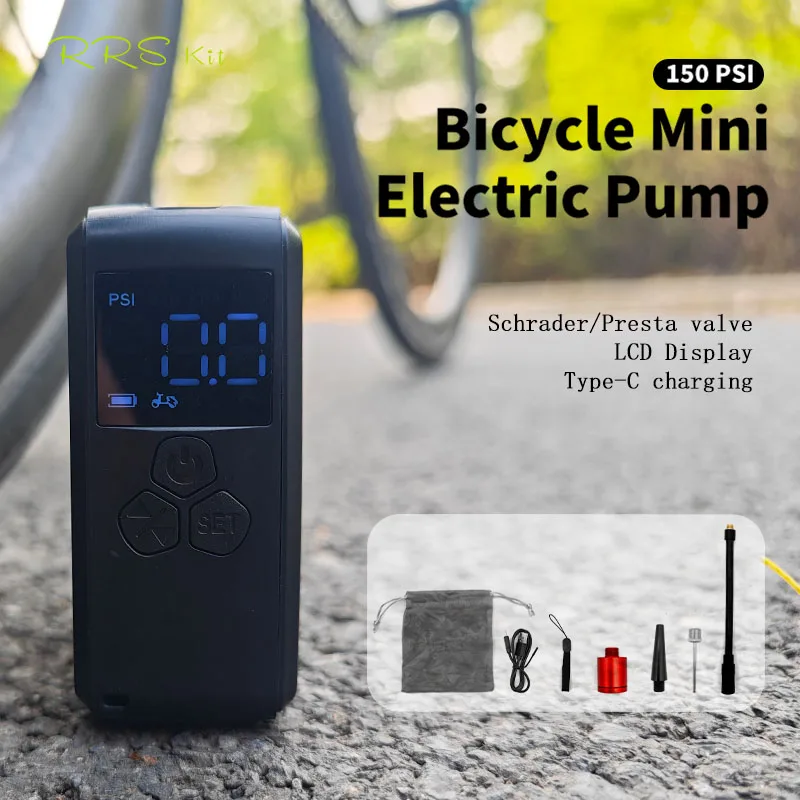 Portable Bike Pump RRSKIT Mini Electric Air Pump 150 PSI Tire Inflator Motorcycles Cars E-bikes and Bicycle with LCD Display