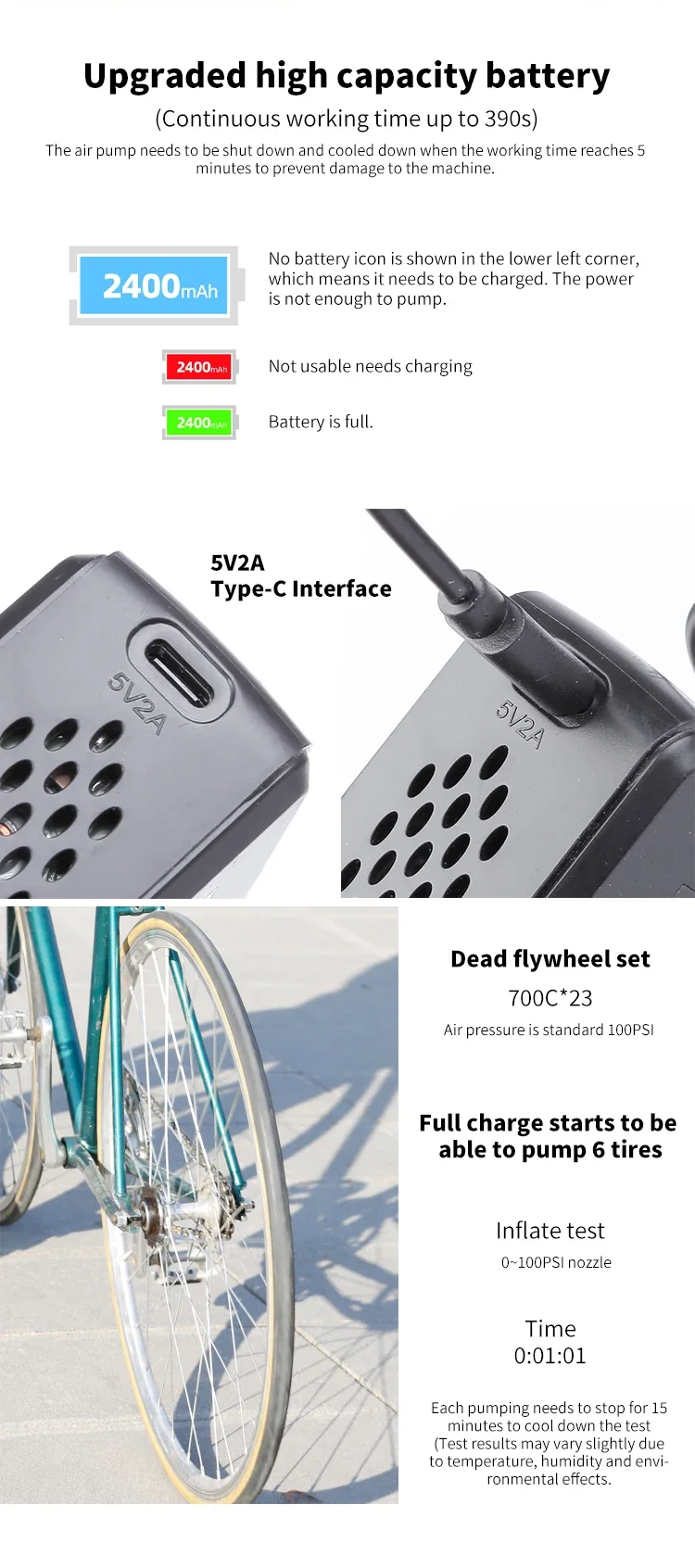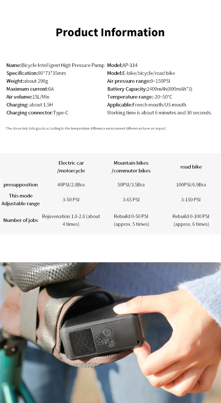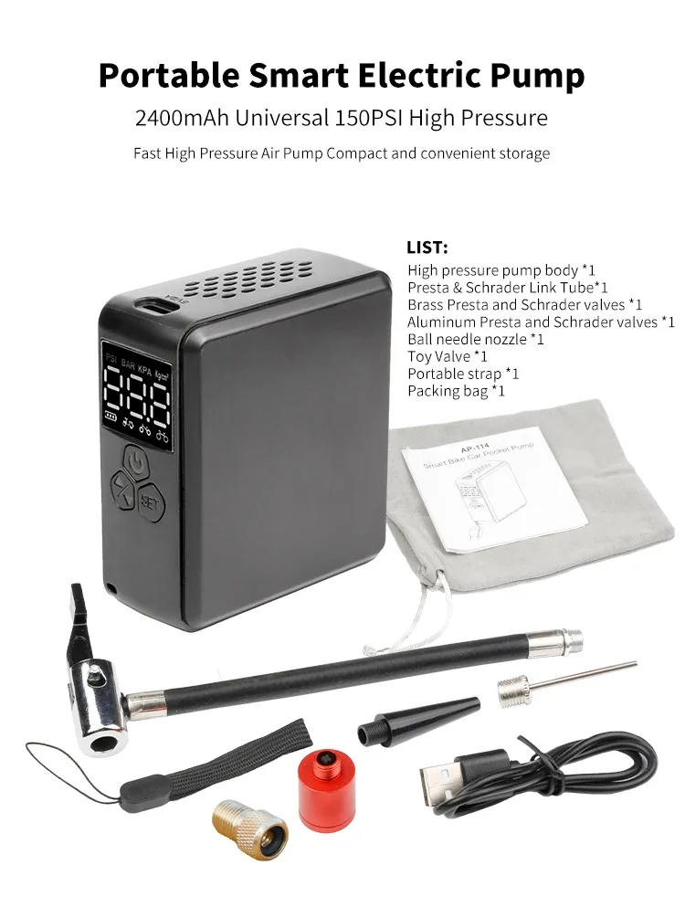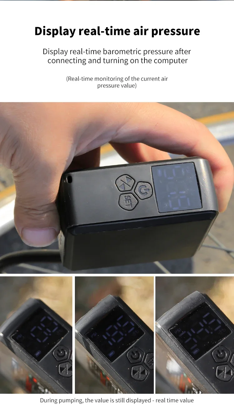 2 reviews for Portable Bike Pump RRSKIT Mini Electric Air Pump 150 PSI Tire Inflator Motorcycles Cars E-bikes and Bicycle with LCD Display
