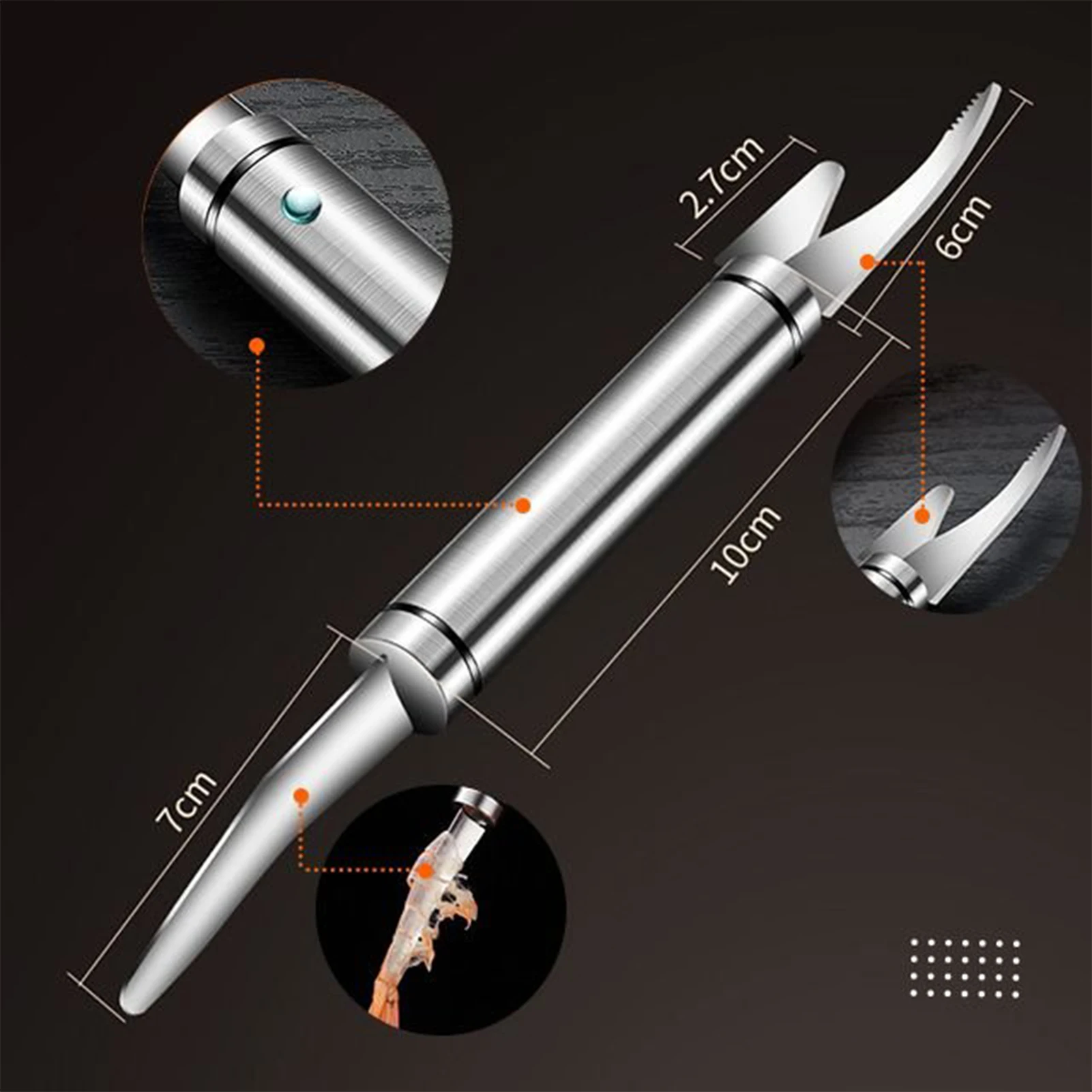 Stainless Steel Shrimp Line Cutting Scraping Digging Fish Scales Knife 6-in-1 Multipurpose Fast Shrimp Peeler Kitchen Tools